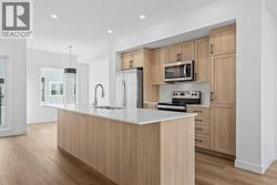 NEW BUILD TOWNHOME | LOW CONDO FEES | 3 BED / 2.5 BATH / 1,198 SQ FT | SINGLE ATTACHED GARAGE + DRIVEWAY | IMMEDIATE POSSESSION – Welcome to the Larch 1 townhome by Minto Communities, an award-winning Canadian builder, located in Wildflower, proudly voted Best New Community in Canada. This vibrant, master-planned community in Airdrie is designed with lifestyle and connection in mind, offering a thoughtful mix of home styles in a neighbourhood built to grow with you.This brand-new townhome features a functional, modern layout ideal for today’s homeowner. The main floor offers a well-balanced design with the living room positioned at the front of the home just off the foyer, creating a welcoming and comfortable space to relax. The kitchen is centrally located and equipped with stainless steel appliances, a kitchen island, ample cabinetry, and storage, seamlessly connecting to the dining area at the rear. Just off the dining space, step out onto your private balcony—perfect for morning coffee or evening downtime.Upstairs, you’ll find a spacious primary bedroom complete with a walk-in closet and private 3-piece ensuite. Two additional bedrooms, a full 4-piece bathroom, and convenient upper-floor laundry complete this level, offering excellent functionality for families, guests, or a home office setup.The lower level includes a 2-piece bathroom, generous storage space, and direct access to the single attached garage. A full driveway provides additional parking, offering everyday convenience rarely found in townhome living.Residents of Wildflower enjoy exclusive access to The Hillside Hub, a standout amenity centre featuring Airdrie’s first outdoor pool, a hot tub, open-air sports court, and a variety of shared indoor and outdoor spaces designed for gathering, recreation, or quiet retreat. With nearby parks, pathways, amenities, and easy access to major routes, Wildflower delivers a truly well-rounded lifestyle.Combining award-winning community planning, modern desig n, low condo fees, and immediate possession, this is an outstanding opportunity to own a stylish new build townhome in one of Canada’s most celebrated communities. Don’t miss your chance to make Wildflower home! Book your visit today! (id:27)