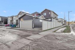 Have you been waiting for the right home in SW Airdrie? This is the one.1100 Bayview Gardens SW sits on a sunny corner lot with extra windows (per architectural controls), next to a massive park in the highly desirable Bayview community, offering the perfect blend of lifestyle, convenience, and comfort with parks, pathways, and everyday amenities nearby.Step inside and enjoy the bright, open feel with 9’ ceilings and a stunning 18’ open-to-above feature that makes the home feel airy and welcoming. The kitchen is a showstopper with white Shaker cabinets, brass hardware, quartz countertops throughout, a sparkle-white quartz island upgrade, plus a $3,000 LG fridge upgrade and a modern chimney-style hood fan. The layout flows beautifully, making it easy to host friends, work from home, or simply relax at the end of the day.Upstairs features a spacious primary retreat with a walk-in closet and an ensuite soaker tub, plus two additional bedrooms and a full bathroom, perfect for family and guests. Stay comfortable year-round with central air conditioning. An unfinished basement provides a clean slate for a future rec room, gym, or additional bedrooms with roughed-in plumbing already in place.Outside, enjoy summer evenings on the large, two-tier pressure-treated deck, with a gas line for BBQ plus a gas line to the garage for future heating options. The yard is fully finished with fresh sod, garden beds, cotoneaster shrub bed, and the property is fenced on both sides. You’ll also love the bonus gravelled 3rd parking spot beside the garage, perfect for guests or a work vehicle. Additional upgrades include: a double detached garage with 9’ ceilings, extra-wide Victorian-style casing and baseboards, and an extra-wide front concrete step and sidewalk.Located minutes from shopping, dining, schools, commuter routes, and everyday amenities, this is one of the best-value homes in SW Airdrie with this level of upgrades, lot size, and garage setup. Book your private showing with your favourite REALTOR® today!