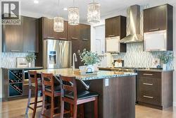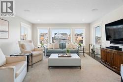 Hello, Gorgeous! Welcome to 1173 Coopers Drive SW, a former showhome located in the heart of Coopers Crossing, offering 5 bedrooms, a fully finished basement, and over 2,345 sq. ft. of above-grade living space. Designed to showcase the best of the community, this home delivers a refined, move-in-ready feel with fresh interior and exterior paint and thoughtful updates throughout. The main floor features a bright, functional layout ideal for both daily living and entertaining, with a spacious kitchen, walk-in pantry, dedicated home office, custom mudroom cabinetry, and seamless flow into the dining and living areas. Upstairs, the primary retreat includes a 5-piece ensuite and custom walk-in closet, complemented by two additional bedrooms, a full bathroom, upper-level laundry, and a generous family room. The fully finished basement expands the home’s versatility with two additional bedrooms, a full bathroom, and a large recreation room with heated floors, perfect for guests, teens, or extended family living. Outside, enjoy a backyard backing onto a park and playground, with a peaceful pond just steps away. Professionally landscaped front and back yards, a heated double attached garage, and smart-home upgrades complete this exceptional offering. A rare opportunity to own a former showhome in one of Airdrie’s most desirable communities, This home truly needs to be seen to be appreciated. (id:27)