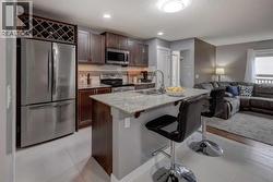 OPEN HOUSE Saturday Feb 7th from 2-4pm ** Charming curb appeal, a thoughtfully designed layout, brand new Basement development, and an oversized double detached Garage - all come together! Welcome to this beautifully maintained semi-detached 4-bedroom, 3.5-bath home that delivers a functional layout ideal for a growing family. From the moment you arrive, you’ll appreciate the adorable covered front porch, charming front garden beds, and inviting curb appeal that set the tone. Step inside to a functional tiled foyer perfect for muddy winter boots and busy mornings, and continue into the bright main floor featuring hardwood and tile flooring throughout. A front Office/Den provides a flexible work-from-home or playroom space, while the heart of the home is the Kitchen, showcasing rich cabinetry, quartz countertops, SS appliances, an eat-up island, a built-in custom wine rack above the fridge, and a large Pantry for added organization. The open-concept Dining area easily accommodates a large gathering table and flows into the spacious Living Room — ideal for both everyday living and entertaining. Near the back entrance, enjoy an organized closet and built-in bench, creating a smart drop zone before stepping outside to the extremely private NW facing, full-width back deck, beautifully shielded by the detached garage and a built-in privacy wall. Completing the main level is a well-placed 2pc Bathroom with pedestal sink. Upstairs, you’ll find three bedrooms, including a generous Primary retreat with Walk-In Closet AND a 4-pc ensuite featuring an oversized tile-surrounded soaker tub beneath a large opening window. Additional two bedrooms are finished with carpet for added comfort. The upper Laundry Room adds everyday convenience with built-in cabinetry and a folding counter. The NEWLY DEVELOPED Basement adds outstanding value, offering a FOURTH BEDROOM, spacious Rec Room, and an elegant full Bathroom with a corner walk-in shower, all finished with modern vinyl plank floorin g and bright recessed lighting. Additional highlights include Central Air Conditioning for year-round comfort, south-facing front exposure to enjoy your morning coffee, rear lane access, and a fantastic oversized Detached Double Garage with lot’s of electrical outlets. Located close proximity and walking distance to parks, walking paths, schools, and shopping, this move-in-ready home delivers space, function, and comfort in a family-friendly community! Book your private viewing TODAY. (id:27)