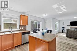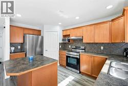 Welcome to this beautifully updated 5-bedroom, 3.5-bathroom home offering over 2,400 sq. ft. of total living space in one of Airdrie’s most prestigious and peaceful cul-de-sacs. Perfect for first-time buyers or growing families, this home sits on a massive lot with incredible curb appeal and is just steps from playgrounds, parks, and everyday amenities. Inside, you’ll love the brand-new vinyl flooring, fresh paint throughout, modern pot lights and flush-mount lighting, updated toilet seats, and sleek new stainless steel appliances. The main floor is bright and open with large south-facing windows, a cozy gas fireplace, and plenty of space for family gatherings. Upstairs, you’ll find three generously sized bedrooms including a spacious primary suite with a walk-in closet and private ensuite, plus a versatile bonus room. The fully developed walkout basement features a 2-bedroom illegal suite with its own washroom, full kitchen, separate laundry, appliances, rec room/living area, and a private entrance—perfect for rental income or extended family living. Step outside to your private backyard oasis featuring a two-tiered deck, mature trees, and a stunning waterfall stream feature that creates a serene retreat. With a double attached garage, expansive driveway, and an unbeatable location close to schools, shops, and Nose Creek Park, this property truly has it all. Don’t miss your chance to own this one-of-a-kind property—book your private showing today with your favourite realtor! (id:27)