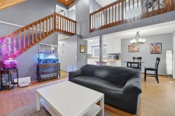 Get ready—this incredible 3-bedroom home is about to steal your heart! With 2 full bathrooms, a fully developed basement, and a warm, welcoming vibe, this unique property is the kind you need to see immediately. The outside is built to last with cedar and brick siding. In the heart of Older Airdrie where there is nothing cookie cutter in sight.Step inside to a soaring VAULTED great room featuring a stunning stone-faced, WOOD-BURNING fireplace that instantly sets the mood. The open-concept kitchen and nook are perfect for hosting unforgettable gatherings. Plus—don’t miss this—there’s a rare main-floor bedroom paired with a full 4pc bathroom.Head upstairs to a bright, airy loft overlooking the great room could easily be converted into a 4th bedroom or nursery, another 4pc bathroom, and a spacious master bedroom drenched in natural light. The basement is fully finished with space for a play area, a generous family room/media zone, and a third bedroom complete with its own convenient half-bath ensuite.Enjoy peace of mind with a high-efficiency furnace/vents cleaned and repaired in 2025, serviced and repaired hot water tank. Outside, the full concrete driveway is perfect for RV or boat parking leading to a large garage with a fenced West facing backyard that still offers plenty of room to enjoy the afternoon sun on the oversized deck.This home is MOVE-IN READY and it won’t last—don’t wait!! walking distance from Genesis and all grocery needs.