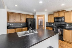 Welcome to this 5-bedroom, 3.5-bathroom home nestled in the desirable community of KING'S HEIGHTS . Designed for comfort and functionality, this property offers over 2800 sqft of beautifully finished living space (fully finished basement with separate side entrance) and a separate front service road.The open-concept main floor features a bright and inviting living area with custom shelving unit and a gas fireplace, complete with large windows that fill the space with natural light. The kitchen boasts with a large island, and a spacious pantry, ideal for everyday living and entertaining. Main floor completes with half bath and a laundry room. Upstairs, you’ll find three generously sized bedrooms, including a primary retreat with a walk-in closet and private ensuite. A full bath and a bonus room with high ceiling with lots of windows for plenty of natural light completes upper level. The fully developed basement includes two additional bedrooms, a full bathroom, separate laundry and a separate side entrance. Enjoy outdoor living in the fully landscaped backyard, perfect for summer barbecues and family gatherings. The attached double garage provides ample parking and storage. Located close to schools, parks, pathways, shopping, and major routes, this home offers the perfect balance of comfort, convenience, and community living. Don’t miss your chance to make this King’s Heights home yours!