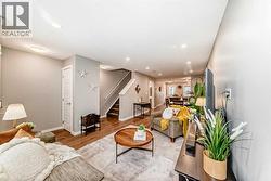 Open House -- Sunday Feb 15, 1-3 -- Welcome to Ravenswood - quiet streets, parks and pathways, and close proximity to shopping, dining, schools. This lovingly maintained 2-bedroom, 1.5 bath townhome is ideal for downsizing, first-time buyers, or investors. This home has an attractive open concept layout and a quaint private backyard. The bright main floor flows from the living area to the dining space and kitchen. The kitchen features trendy rich cabinetry, quartz counters, an electric stove, dishwasher, and microwave hood fan, plus plenty of counter space for cooking and entertaining. Don't forget about the adorable half bath. Upstairs, you’ll find two HUGE bedrooms. The Primary has room for your King Bed, lots of Furniture and Workout Equipment. The Main Bath is a cheater suite flowing to the WIC and Primary Bedroom. Additional storage can be found in the attic with a pull down staircase allowing access. Fresh paint throughout, Air Conditioning and upper floor laundry make this home a dream! Enjoy your fenced backyard, perfect for BBQs, gardening, or watching your children play. This property includes a dedicated parking stall. Condo fees include snow removal, landscaping, and insurance. 2 pets allowed. Make it yours today! (id:27)