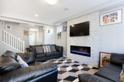 Welcome to this beautifully updated family home in the desirable community of South Windsong, Airdrie! Offering over 2,400 sq.ft. of developed living space, this property features 5 bedrooms and 3.5 bathrooms, including 4 spacious bedrooms upstairs — perfect for a growing family.The primary suite includes a walk-in closet and a private ensuite, providing a comfortable retreat. The main level showcases a modern kitchen with ceiling-height cabinets, quartz countertops, stainless steel appliances, and a large island, opening to a bright living room with a custom fireplace feature wall.The fully finished basement adds an additional bedroom, full bathroom, and large rec room for family entertainment or guests. Upstairs, enjoy the convenience of laundry on the same level as the bedrooms, and a private balcony off one of the rooms — a perfect spot to unwind.Outside, a large backyard and front-attached garage complete this wonderful home, located close to parks, schools, shopping, and pathways.