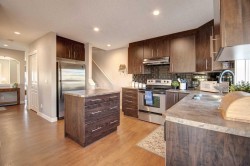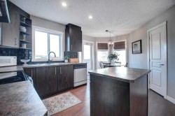 End unit townhouse in Kings Height, Airdrie! This 1,235 sq foot home includes tons of windows for natural light, The spacious living room on the main floor is ready for entertaining, and a beautiful, functional kitchen with a dining nook is ideal for anyone who loves to cook. The natural light continues upstairs in the two generous bedrooms – each with a dedicated ensuite. The larger of the two is currently being used as a bonus room/office. The undeveloped basement houses laundry and plenty of space for storage, as well as future development opportunity. The unit sits on a corner lot and features a private, fenced backyard, two dedicated parking spaces and ample street parking. No need to worry about grass or snow removal, everything is taken care of for you. Located in southwest Airdrie with schools, parks, and shopping at your fingertips, accessing the highway for commuting is also a breeze. Call for more details!