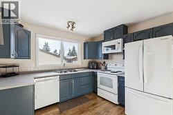 Meet “AVERY” — a stylish two-storey located on a quiet, tree-lined street in Airdrie Meadows. Step inside to a spacious and inviting floor plan, where large windows throughout allow an abundance of natural light to fill the home. The updated kitchen features beautiful blue cabinetry and newer appliances, while the dining area seamlessly connects the kitchen and living room — perfect for everyday living and entertaining. A side-entry mudroom and convenient main-floor half bath add functionality, and newer windows throughout enhance comfort and efficiency. Upstairs, you’ll find three generously sized bedrooms, including an impressive primary suite complete with a walk-through closet and a recently updated 2-piece ENSUITE. The main bathroom offers a tub/shower combination and ample storage. Outside, enjoy a large, fully fenced yard with south and west exposure, a deck with gazebo, and an OVERSIZED DOUBLE DETACHED GARAGE that is insulated (heater not used and sold as-is). A rear gate provides additional access and offers potential RV parking. The basement includes a large recreation room, laundry area, and a fourth bedroom (note: partially finished and window does not meet current egress requirements). Centrally located near shopping, transit, parks, and playgrounds, and just steps from Muriel Clayton Middle School, this move-in ready home offers excellent value in an established community. Book your showing today. (id:27)