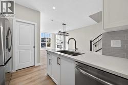 Welcome to 2198 Bayview Drive, the "Eli" - the largest floor plan option available by Genesis Builders Group. This beautifully finished NO CONDO FEE street-side townhome offers almost 1600 sq ft. of well-designed living space with 3 bedrooms, 2.5 bathrooms and a flex space on the 2nd floor, plus an unfinished basement with 9-foot ceilings, ready for your ideas. Large windows and soaring ceilings on the main floor let natural light fill the open-concept living space. The chef-inspired kitchen features sleek cabinetry and stone countertops and is well-equipped with stainless-steel appliances. The kitchen is tucked away yet still feels open and inviting, providing ample room for activities in the open-concept dining and living room. A floor-to-ceiling tiled fireplace is the living room's focal point. Complementing the main floor is a convenient half bath, storage, and access to the attached double garage, which is large enough for a truck. Venturing upstairs, you will find a spacious primary retreat with a spa-like ensuite featuring a shower, his-and-hers sinks, and a walk-in closet. Two additional bedrooms, a full bathroom, a flex room, a 4-piece bathroom, and laundry facilities complete the upper level. Enjoy spending time on your upper rooftop patio, situated above the garage, which is an excellent space for entertaining. Bayview is a beautiful community with parks, benches and pathways that meander throughout the community and along the canals. Kids and adults alike will enjoy the outdoor basketball nets, gym, amphitheatre, and tennis courts, which will convert into a skating rink in the winter. Come and see for yourself all the amenities the community has to offer! *RMS has been applied to the construction drawings provided by the builder. Taxes to be assessed* (id:27)