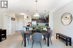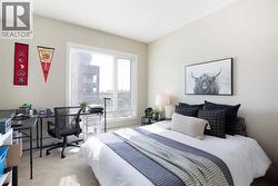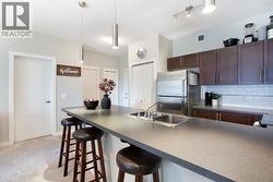 Experience the perfect harmony of modern sophistication and effortless living in this beautifully updated, south-facing sanctuary. Spanning a generous 847 square feet, this two-bedroom, two-bathroom condo is a masterclass in functional design, maximizing every inch to create an atmosphere that feels both expansive and intimate. Bathed in natural light from its coveted southern exposure, the open-concept layout invites you into a bright, airy living area that flows seamlessly onto a private, sun-drenched balcony—the ultimate setting for morning coffee or evening reflection. The heart of this residence is a chef-inspired kitchen that balances warmth with high-end style. Featuring rich walnut cabinetry, contemporary tiling, and a massive central island with seating for four, it serves as a premier hub for weekend entertaining or quiet weeknight meals. The floor plan is thoughtfully arranged with privacy as a priority; the primary suite acts as a true retreat, offering a large window that frames the sun and a dedicated three-piece ensuite. A spacious secondary bedroom and a full four-piece main bathroom provide ample room for guests, a home office, or a growing family, while the convenience of in-suite laundry ensures your daily routine remains streamlined. Beyond the walls of this stunning unit, the location on East Lake Boulevard is truly unparalleled. Imagine a vibrant community where your front door is situated merely steps from the premier amenities of Genesis Place. Whether you are heading to the gym, the pool, or the skating rink, world-class recreation is right at your fingertips. The lifestyle appeal continues with Bert Church High School, outdoor hockey rinks, tennis courts, and diverse shopping destinations all within easy walking distance. Meticulously maintained and entirely move-in ready, this modern residence offers an incredible opportunity for first-time buyers entering the market, downsizers seeking a simpler pace, or savvy investors eyeing a high-dema nd district. This isn’t just a condo; it’s a gateway to a convenient, active, and luminous future. Don’t allow this rare find to pass you by—come experience the charm of this exceptional property for yourself and schedule your private viewing today! (id:27)