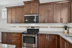 Introducing this adorable former show home in the highly sought-after community of Williamstown! Tucked away on a quiet close with no through roads and backing onto peaceful farmers’ fields, this home offers a perfect blend of style, comfort, and tranquility.Step inside to discover an open, inviting layout ideal for entertaining or relaxing with family. The main floor features durable laminate flooring, 9-foot ceilings, and a bright dining area filled with natural light and designer touches. The cozy living room fireplace creates a warm ambiance, while the massive kitchen island is perfect for baking, breakfast, or gathering with friends. With modern cabinetry and plenty of storage, this kitchen truly stands out.Upstairs, enjoy the spacious primary retreat complete with a large walk-in closet and a luxurious ensuite featuring a soaker tub and stand-alone shower. The upper-level laundry adds everyday convenience, and two additional bedrooms plus a full bathroom complete this level.The fully finished basement offers extra living space, perfect for a family room, home office, or gym. The fenced backyard includes a concrete pad ready for a future double garage, with paved alley access for additional parking.With 4 bedrooms, 3.5 bathrooms, and no neighbors behind, this charming home has it all, close to schools, shopping, playgrounds, and walking paths. This is the one you’ve been waiting for!