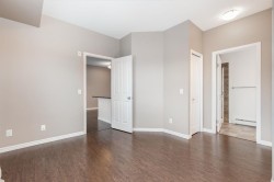 Immediate Possession Available on this Gorgeous END UNIT - 2 Bedroom and 2 Bath Condo with a South Facing Balcony. When you are arrive, you will immediately notice the great lighting from the Oversized South Facing Window and fantastic Kitchen that has been recently updated with BRAND NEW REFINISHED CABINETRY, Stainless Steel Appliances, Built in Pantry, Granite Countertops, and a Large Island. The Open Concept Living Room allows great space for furniture and a Dining Room Table. The Primary Bedroom is 13'7" x 12'11" and opens to a walk through his and hers closets and the Ensuite with a Shower Stall. The Second Bedroom can fit a Queen sized Bed. There is also a Full Bathroom, and a Laundry Room with storage space. Enjoy all the views and the Sun with the Larger South Facing Balcony that has a Gas line for your BBQ. This Beautiful Condo also has separate storage in the basement. This Well Managed Condo has an amazing Courtyard with Gazebo area for the residents to use. CONDO FEES Include water, heat, sewer. You pay the electricity. Located close to Restaurants, Grocery, Entertainment and quick access to QE2. This condo is ready for you to make it yours.