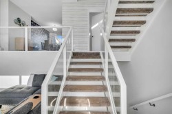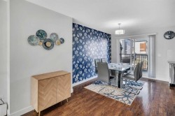 Your Airdrie haven awaits at 404-1530 Bayside Ave SW, a delightful townhouse nestled within the highly desirable Bayside community. Featuring 3 BEDS|2.5 BATHS| DOUBLE ATTACHED GARAGE| AIR CONDITIONER| FENCED FRONT YARD| EXTENDED BALCONY| GLASS RAILINGS| HIGH CEILINGS| OPEN TO ABOVE|, this home offers a wonderful living experience.Step inside to discover a perfectly designed main level, where the living room boasts an impressive open-to-above concept and soaring windows, bathing the space in warm natural light. For those moments of quiet relaxation, an electric fireplace adds a touch of cozy ambiance while you read or watch television.Ascend to the split-level upper floor, thoughtfully designed for all your daily dining needs. The open kitchen, complete with intelligently placed cabinetry offering ample pantry storage, is equipped with sleek stainless steel appliances to inspire your cooking needs. The adjacent dining space provides generous room for hosting large family meals and gatherings.Extend your living space outdoors onto the substantial balcony, enhanced with modern railings and offering a pleasant side view of the lake – a perfect spot to enjoy your afternoon tea with a smile. A convenient powder room completes this level.The upper floor also features a stacked laundry area with a contemporary washer and dryer unit for added convenience. Your primary bedroom serves as a true retreat at the end of the day, boasting an ensuite washroom with double vanity sinks. Two additional well-proportioned bedrooms on this floor can easily accommodate queen-size beds, and a full bathroom caters to the needs of a growing family.Benefit from the convenience of a double attached garage, along with an additional parking pad, providing space for up to four vehicles. The unfinished basement offers exciting potential for customization – envision a home office, a cozy den, or any other space to suit your unique lifestyle.Don't miss the opportunity to truly experience the charm of this wonderful townhouse. Book your personal showing today and take the first step towards making 404-1530 Bayside Ave SW your new address.Check 3D tour.