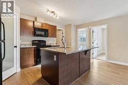 This charming 811 sq/ft two-bedroom townhouse offers a spacious open concept floor plan knockdown ceilings, a kitchen featuring granite countertops, a large island, and a corner pantry for ample storage. Both bedrooms are bright, sunny, and generously sized with cozy carpeting. Additional highlights include a 4-piece bathroom, a convenient laundry room, and extra storage space. Enjoy warm summer evenings on your west facing patio at the private front entrance. Located in the family-friendly community of Prairie Springs, residents have access to schools, playgrounds, sports facilities, and paved pathways, with shopping just a short 7-minute drive away. With plenty of parking and green spaces for the kids, this townhouse is the perfect first home. Call now to schedule a viewing! (id:27)