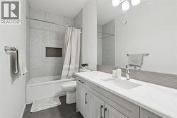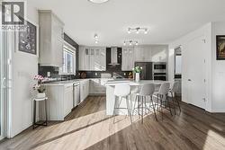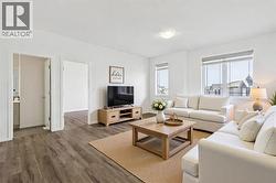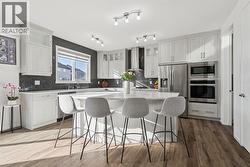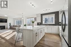 Welcome to #557 Southwinds Close SW, Airdrie, a stunning original-owner, highly upgraded family home perfectly positioned on a massive SW-facing pie lot on a quiet, low-traffic street. Offering over 2,800 sq ft above grade, 4 bedrooms, and 3.5 bathrooms, this home showcases thoughtful design, elevated finishes, and near-new condition throughout. From the moment you arrive, the charming front veranda and excellent curb appeal set the tone. Inside, you're greeted by 9’ ceilings, 8’ interior doors, tasteful modern colours, and an open-concept layout flooded with natural light. Durable and stylish upgraded luxury vinyl plank flooring runs throughout the main and upper levels, creating a cohesive, family-friendly space. The heart of the home is the bright, chef-inspired kitchen, featuring upgraded stainless appliances, a gas cooktop, built-in oven, under-cabinet lighting, and an abundance of cabinetry and prep space. The full butler’s kitchen elevates both entertaining and daily life, complete with a second gas stove and additional storage. Overlooking the spacious dining and living areas, the living room is anchored by a gorgeous gas fireplace and enhanced by oversized windows that frame the backyard beautifully. A main-level office provides a quiet workspace, while the custom boot room with built-in bench keeps busy family life organized. The highly upgraded staircase adds architectural interest and leads you upstairs to a thoughtfully designed upper level. Upstairs, you'll find four generously sized bedrooms, all with walk-in closets, centered around a huge bonus room—perfect for movie nights, a play area, or teen retreat. Two of the bedrooms feature private, spa-like en suite bathrooms, offering comfort and flexibility for families or guests. The upper-level laundry room adds everyday convenience. Outside, enjoy the fully fenced, oversized pie lot with southwest exposure, ideal for afternoon sun, kids at play, and future outdoor living plans. Additional highligh ts include custom blinds throughout, hot water to the garage, a double attached garage, and a true turn-key condition rarely found. Located in a family-friendly area, this home is close to all levels of schools, parks, and everyday amenities, with easy highway access for commuters. Future development plans include new schools and another expanded Genesis Place recreation facility, making this an even more attractive long-term investment. Thoughtfully upgraded and meticulously maintained, this home offers a perfect blend of style, function, and value. Whether you're a growing family or a buyer seeking a move-in-ready home with modern finishes, this property delivers on every level. (id:27)