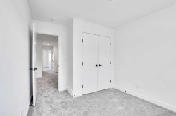 Welcome to 59 Baysprings Terrace, where modern comfort meets timeless design. These brand-new townhomes, built by Luxury Custom Builders, offer a range of thoughtfully designed layouts tailored for contemporary living. Step into a bright and open-concept main floor featuring luxury vinyl plank flooring that flows beautifully throughout the space. At the heart of the home is a gourmet kitchen with a large quartz island, sleek stainless steel appliances, and ample cabinetry—ideal for both entertaining and everyday family meals. A convenient half bath completes the main level. Upstairs, you’ll find three spacious bedrooms, each with walk-in closets and custom built-in shelving. The primary suite is a true retreat—large enough for a king-size bed and complete with a luxurious 5-piece ensuite, including dual sinks, a deep soaker tub, and a separate walk-in shower. A dedicated laundry area on this floor adds everyday convenience. The unfinished basement comes with roughed-in plumbing and awaits your personal vision—ask about available customization options! Enjoy a west-facing, fully fenced backyard with professional landscaping and access to a double detached garage. Located in a well-maintained, self-managed complex with low condo fees, this community offers a warm and welcoming atmosphere. Take advantage of the nearby waterfront trails, paddle-boarding, and winter skating/hockey on the Canals. Families will love the walkability to parks, playgrounds, Nose Creek School (K–4), and close proximity to shopping, dining, and essential services. Whether you’re seeking a spacious family layout or a more compact design, there’s a unit here to match your needs. Note: The Room Dimensions of each unit may vary as the measurements were taken from the builder blueprints. Book your private tour today