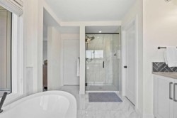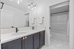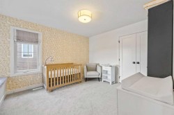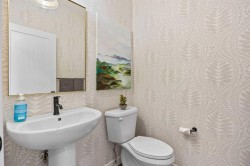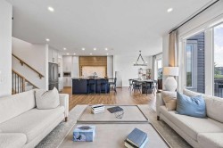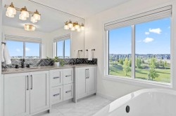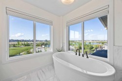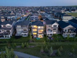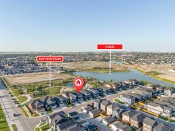 Welcome to this exceptional 30 ft wide former showhome, backing directly onto the scenic Bayview Park, in a vibrant community featuring a tranquil canal system, expansive green spaces, and a future school just steps away. Thoughtfully designed and meticulously upgraded with over $150,000 in high-end finishes, this award-winning residence blends sophistication, comfort, and modern functionality.Over 3600 Sq ft. developed area, the main level impresses with two-tone cabinetry, stacked flooring, and two-tone quartz countertops, beautifully accented by white oak railings and elegant boxed-up ceiling details. The custom kitchen is both stylish and practical, seamlessly connecting to open-concept living and dining areas. A large spa-inspired ensuite bathroom and comfort-height vanities bring a touch of everyday luxury, while triple-pane windows ensure quiet and energy efficiency throughout the home.Upstairs, a generous bonus room with 9 ft ceilings offers a perfect space for relaxing or entertaining. Every bedroom is pre-wired with TV and data ports, reflecting the home’s forward-thinking design. The laundry room is roughed in for a future sink, offering additional convenience.The fully developed basement adds an additional 810 sq ft of living space with 9 ft ceilings, and features a spacious recreational area, a large bedroom, and a full bathroom, perfect for guests, teens, or multi-generational living. In-ceiling speakers are installed on every level, delivering a seamless audio experience throughout the home.Modern amenities continue with a dual-zone furnace system, central air conditioning, and an upgraded 200 AMP electrical panel. The heated garage with an 8 ft overhead door is EV-ready with charging rough-in already in place. Exterior upgrades include Gemstone permanent lighting, an irrigation system, and a hot tub control panel, enhancing the outdoor lifestyle.This is a rare opportunity to own a turnkey luxury home in a premier location—designed to impress and built to last.