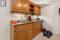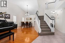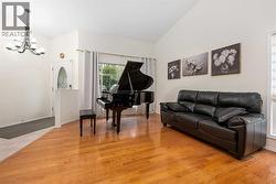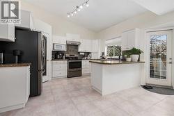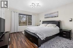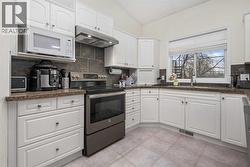 Welcome to this beautifully updated 2-storey split home, ideally located along the 10th hole of Woodside Golf Course. This impressive property combines timeless design with thoughtful modern upgrades, offering both comfort and functionality.The home has been freshly painted and features numerous recent improvements, including a new furnace and hot water tank (January 2025), new hood fan (January 2025), and a new dishwasher (November 2025), providing peace of mind for years to come.Upon entry, you’re greeted by high vaulted ceilings in the living room, dining area, and kitchen, creating an airy and welcoming atmosphere. Large windows fill the home with natural light, enhancing the open and spacious feel throughout. The main floor offers a cozy sunken family room with a gas fireplace, perfect for relaxing evenings, as well as a versatile main floor bedroom ideal for a home office or guest room.Upstairs, you’ll find three generously sized bedrooms, including a spacious primary retreat featuring a recently renovated ensuite and a custom walk-in closet by California Closets. The second level has been updated with modern vinyl plank flooring, adding a sleek and contemporary touch.The fully finished basement is designed for entertaining, offering a large recreation room complete with a fireplace, built-in desk, bar, and TV wall unit. A fifth bedroom and a 3-piece bathroom complete this flexible lower level.Additional highlights include air conditioning, location on a school bus route with priority snow removal, an extra-long driveway accommodating up to four vehicles or a large RV, and a spacious oversized double garage.Step outside to enjoy summer days on the large deck, overlooking a beautifully maintained backyard with a sprinkler system, all just steps from Woodside Golf Course and the 525 Restaurant.This is a rare opportunity to own a well-maintained, move-in-ready home in a premium golf course location. (id:27)