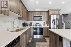 Welcome to 752 Osborne Drive SW, a well-designed 2-storey row townhouse in the established community of South Windsong. Built in 2019 and offering 1,368 sq. ft. of above-grade living space, this 3-bedroom, 2.5-bath home delivers a functional layout, modern finishes, and fee-simple ownership with no condo fees.The main floor is laid out for everyday living. A front foyer opens into a bright living area with durable vinyl plank flooring and clean sightlines through the dining space and kitchen. The kitchen is practical and contemporary, featuring stone countertops, a central island with breakfast bar seating, and a stainless steel appliances. A 2-piece bathroom completes the main level, making the space equally suitable for families, guests, or entertaining.Upstairs, all three bedrooms are well proportioned. The primary bedroom offers generous space, a full 4-piece ensuite, and excellent separation from the secondary bedrooms. Two additional bedrooms share a 4-piece bathroom, and a central upper-level family room provides flexible space for a home office, media area, or kids’ zone.The full basement is unfinished and ready for future development, with laundry already located on this level. Outside, enjoy both a front porch and upper balcony, along with a small lawn area. Parking is a standout feature, with a rear double attached garage accessed by the alley, plus additional street parking.Located close to parks, playgrounds, schools, shopping, and walking paths, this home offers a straightforward, low-maintenance option in a growing southwest Airdrie neighbourhood. Possession is flexible, making it suitable for both owners and investors looking for a move-in-ready property with room to add value. (id:27)