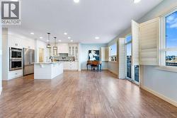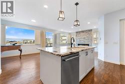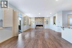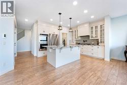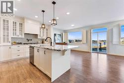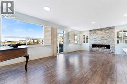 OPEN HOUSE FEB 7 & 8, SAT & SUN: 1-3PM Welcome to this beautifully upgraded corner-lot family home in the heart of Midtown, Airdrie, backing onto the pond and walking paths with park-facing views that offer calming scenery and exceptional privacy. This home provides over 2,500 sq ft of thoughtfully designed living space above grade, plus an unfinished basement ready for future development. Inside, you’ll appreciate 9-foot ceilings throughout, a vaulted upper-level living area, and an expanded back wall that enhances natural light and usable space. The main floor features a functional open-concept layout with a spacious kitchen complete with double wall ovens, a pot filler above the range, a dedicated pantry fridge, and seamless flow into the dining and living areas anchored by an upgraded stone fireplace featuring one of the largest fireplace sizes available. Upstairs offers an ideal family layout with a generous primary retreat and spa-inspired ensuite with the largest tub option, additional well-sized bedrooms, a kids’ wet-room bathroom with three sinks, shower, and tub, convenient upper-level laundry, and excellent built-in storage. The outdoor space has seen over $30,000 invested, including a stone patio with fire pit, low-maintenance deck, and natural gas hookup, all perfectly positioned to enjoy pond views and the surrounding pathways. Practical upgrades include lifetime-warranty shutters on every window, a water softener system, a custom mudroom with cleaning closet and coat hooks, and an extra-long, extra-wide garage ideal for trucks, with natural gas and power roughed in for a heater, hose bibs, and security wiring. Located in the vibrant Midtown community, this home is steps from walking paths, parks, and green spaces, close to schools, shopping, restaurants, and everyday amenities, with easy access to major routes, making it a rare opportunity to own a premium, park-front, pond-backing home in one of Airdrie’s most desirable neighborhoods. (id:27)