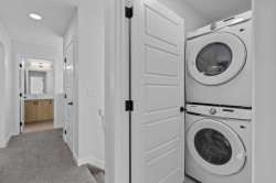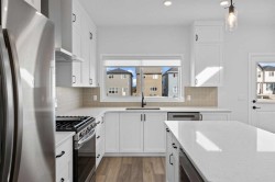 Stylish, Spacious & Move-In Ready in Chinook Winds!Welcome home to this beautifully crafted McKee Homes laned home, perfectly situated in the vibrant community of Chinook Winds — right in front of a peaceful park!This modern 3-bedroom, 2.5-bath home has been thoughtfully designed for comfort, convenience, and style. The bright, open main floor welcomes you with designer finishes, upgraded flooring, and a chef-inspired kitchen that comes fully equipped with stainless steel appliances and sleek cabinetry.Upstairs, you’ll find three generous bedrooms, including a luxurious primary suite with a private ensuite and spacious walk-in closet — your own retreat at the end of the day.The home also features a separate side entrance, offering future flexibility for a potential suite with the approval of the city of Airdrie, and a 20' x 22' rear concrete parking pad, ready for your future garage.Outside, enjoy professionally completed landscaping, a perfect touch for easy, low-maintenance living. And yes — all appliances and window coverings are included, so all that’s left to do is move in and start enjoying your new home!With its fantastic park-front location, upgraded finishes, and unbeatable value, this McKee Homes build offers the perfect blend of modern living and small-town charm.