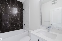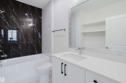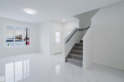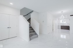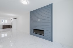 Welcome to this two-storey home located in the community of Ruisseau in Beaumont. The main floor features tile flooring, an open-concept kitchen and dining area, a living room with fireplace, a full bathroom, and a den suitable for office or guest use. A separate entrance provides potential for future development. The upper level offers three bedrooms, including a primary bedroom with a 4-piece ensuite featuring a sink, shower/tub combination, and toilet, a large bonus room for additional living space, and conveniently located upper-floor laundry.