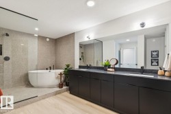 Welcome to the Entertain Play 22 by Cantiro Homes! This beautifully designed home features a boutique style bathroom complete with a modern wet room – perfect for a spa like retreat. With 3 beds and 2.5 baths, there is room for the whole family to spend quality time together or find quiet sanctuary alone. The main living area boasts soaring ceilings with an open to below design and a stunning large window that fills the space with natural light. The spacious living rooms spans the full width of the home, creating an ideal space for gatherings or relaxing evenings. With thoughtful architectural touches and unique design elements throughout, this home offers both style and function. Additional features include: GREENSPACE BACKING PIE LOT, electric fireplace, open to below 2nd level, glass railing.