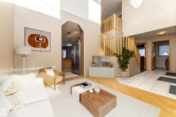 Sick of your Neighbours being so close? Welcome to the mature neighbourhood of Brookside! The Royer built home is almost 2000sqft. As you enter you will notice the gleaming hardwood and spacious family room with soaring 18' ceilings. The solid wood kitchen has tons of cupboard space, rolling shelves for pots and pans, a corner pantry and upgraded stainless steel appliances. The large eating area looks into the huge back yard with 2 decks and plenty of trees and shrubs. The main floor also has a tv room with a cozy gas fireplace and lots of windows and natural light, first level laundry room and an office/den. The second level is featured by the updated primary bedroom, with a massive walk-in closet with solid wood organizer, and ensuite with a 6 ft soaker tub, stand up shower, and a make up area for you to get ready 2 other bdrm and another 4pce bath. Double attached Garage, RV parking, New Shingles, mature landscaping, Central AC, steps from 4 Seasons, and almost 600SqM lot complete this special home!