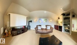 Visit the Listing Brokerage (and/or listing REALTOR®) website to obtain additional information. One-of-a-kind luxury Walkout Backing Pond – Executive Burke Perry Home. Located in one of Beaumont’s most desirable areas, this timeless 2-storey walkout blends elegance and design, featuring stone accents, paving stone patio, and pond views. Inside, soaring ceilings and high-end finishes await. The chef’s kitchen boasts SubZero fridge, Dacor 6-burner range, wine fridge, granite island, and Miele dishwasher—all open to a fieldstone fireplace and formal dining area with dual access to a large zero-maintenance deck. The main floor office includes French doors, pond views, and a double-sided fireplace. The walkout basement offers an in-law living quarters: kitchenette, second laundry, bedroom, den, family room, and sound system room. Bonus: theatre room with projector, smart home tech, oversized garage, dry bar, and new $27K roof. Enjoy sunrises over the pond, and entertain year-round with style and sophistication