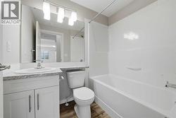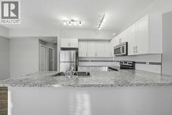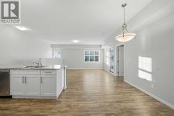 UPPER LEVEL, QUIET condo nestled in the CENTER of the VALLEY CROSSING development. Pull into one of your 2 ASSIGNED POWERED PARKING STALLS close to your front door. Walk inside and when you come in the entranceway, you're greeted with BRAND-NEW CARPET throughout that smells fresh and clean. Once on the main living level - you'll fall in love with the OPEN CONCEPT KITCHEN & LIVING AREA with a large peninsula perfect for entertaining guests or just appreciating the tons of counter space you have for meal preparation or baking. The living area opens out to the COVERED NORTH/WEST FACING DECK. Back inside is 2 good sized BEDROOMS including the primary and ENSUITE. There's another full bathroom as well as IN-SUITE LAUNDRY. Come check it out!! It's easy to find because it's right beside the Abbey Center, walking trails and shopping and has quick access to both Hwy 2 and Hwy 2A. (Some photos have been virtually staged) (id:27)