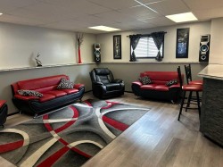 WELL MAINTAINED HOME 1111 LARGE CORNER LOT. Great Tile Floor Entrance leading to great living room and impressive open Kitchen/Dining area, Peninsula Cabinets with Quartz counter top Mosaic Glass Tile backsplash. Pantry. Large Maintenance free Deck and Railing with below deck storage ,Large Master Bedroom with room for King Sized Bed with sliding Mirror Doors .Large Family room in Basement with wet bar area and another large bedroom ,also 3 piece bathroom and Laundry room big enough for another fridge or deep freeze .NOTE THE 10X13 Laundry Room Area would be Quite Easy to use as a a4th Bedroom !!! There is infloor heat in Basement and double attached garage .Check Out the Fancy Metal Roof ,good for Many Many years. Seller will supply Title Insurance in LIEU of RPR at closing .