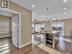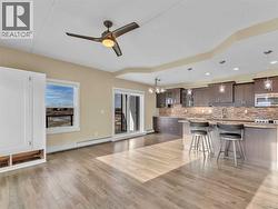 Enjoy refined condo living in this 3rd-floor corner unit located in a quiet adult-oriented building, offering incredible lake views and abundant natural light from multiple exposures. This well-designed home features a spacious Primary Suite with ensuite, a 2nd bedroom with a built in Murphy Bed and an additional full bathroom, ideal for comfort and privacy. The beautiful kitchen is a standout, showcasing granite countertops, custom upgraded cabinetry, and ample workspace, perfect for both everyday living and entertaining. The thoughtful layout flows seamlessly into the living and dining areas, where large windows and glass doors frame the stunning lake scenery. Step outside to the wraparound deck, where you’ll find two exterior storage units, providing ultimate convenience and extra space for seasonal, outdoor or workshop items. Additional highlights include in-suite laundry, one secure indoor parking stall, and an additional outdoor parking spot, a valuable combination! Building amenities enhance the lifestyle, featuring an inviting entry-level common area ideal for visits and enjoying a coffee, along with an elevator for easy access to and from the units. All of this is complimented by the peaceful atmosphere of adult living, making this bright corner unit an exceptional opportunity in a sought-after condo community. (id:27)