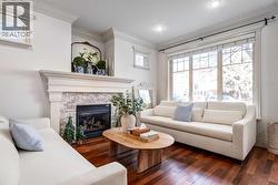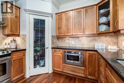 Welcome to the Brownstones of West Hillhurst. Presenting this unique opportunity to own a timeless and traditionally crafted home designed by locally acclaimed architect John Hadden. This highly sought-after location is walking distance to the trendy Kensington district featuring fine cafes, restaurants and retail shops. Minutes away from the University of Calgary and convenient access to downtown, this home is perfect for all demographics. This exceptional 3-bedroom front unit offers over 2100 square foot of living space, enhanced by luxurious finishes, soaring 9’ ceilings, crown moulding, recessed pot lighting, exquisite trim and hardwood floors. The home opens effortlessly into the living room featuring a cozy stone faced gas fireplace with mantle and overlooks your private north facing fenced patio allowing for abundant sunlight, creating a bright and welcoming atmosphere. Beyond the living room you will find the dedicated dining room which flows into a culinary dream. The impressive gourmet kitchen features a gas range and convection oven, 20 amp outlets, under-cabinet lighting, Frigidaire Gallery stainless steel appliances, built-in drawer microwave, shaker panel stained maple cabinets and rich granite counters. The laundry room with wash sink and 2-piece bathroom complete the main floor. On the upper level, the primary bedroom is detailed with elegant wainscoting, vaulted ceiling with remote operated ceiling fan and walk-in closet with custom organization. The spa inspired 5 piece ensuite features dual vanities, an oversized soaker tub and a standalone glass shower. The second bedroom includes 2 large closets and jack-and-jill 4-piece bathroom. Venture into the fully finished basement, a flexible space ideal for relaxation, entertainment or extra workspace. Here you'll find a generous recreation room featuring a dry bar with bar fridge, wine rack and granite counter top. An additional bedroom with private 4-piece bathroom, large storage room and utility room completes this lower level. Low monthly condo fees take care of all exterior yard maintenance, irrigation, snow removal, garage utilities and more. Welcome to a thoughtfully designed residence that offers a traditional style with an exceptional location —welcome home to the Brownstones. (id:27)