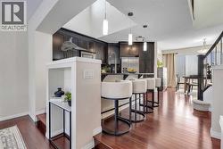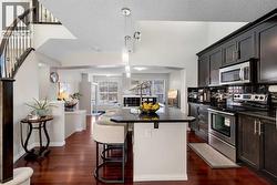 Welcome to this bright and beautifully maintained END-UNIT LANED HOME, offering comfort, functionality, and thoughtful upgrades throughout. Bathed in natural light from large windows, the OPEN CONCEPT main floor features HARDWOOD FLOORING, upgraded cabinetry, and a seamless flow that makes everyday living and entertaining effortless. The OPEN-TO-BELOW DESIGN enhances the sense of space and light, creating a welcoming atmosphere from the moment you enter.The kitchen is both stylish and practical, offering ample storage and counter space, and opening directly to the dining and living areas. A convenient powder room completes the main floor. Upstairs, you will find THREE GENEROUSLY SIZED BEDROOMS and TWO FULL BATHROOMS, providing an ideal layout for growing families or professionals working from home. This home was previously used as a day home, reflecting its thoughtful layout and family-friendly functionality.Step outside to enjoy the OVERSIZED COMPOSITE DECK, perfect for summer gatherings, barbecues, or quiet evenings. The FULLY FENCED YARD offers privacy and security, while the DOUBLE DETACHED GARAGE provides ample parking and storage.Additional highlights include SOLAR PANEL for energy efficiency and long-term savings, as well as an unfinished basement ready for future development. Steps away to Bayside Elementary School and with easy access to public transit, this location adds everyday convenience to an already well-rounded home.A rare end-unit opportunity offering space, light, and smart upgrades. This is one you will not want to miss. (id:27)