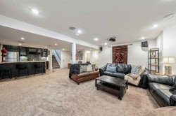 * Open House Saturday, Jan 10 1-3pm & Sunday, Jan 11 1-3pm* Welcome Home! This immaculate Estate Home is located in Rockford Estates, on a quiet and family-friendly street in the sought after community of Rocky Ridge! This 2013 build boasts over 3400 sq ft of living space. Stepping into this elegant home, you are greeted with a grand foyer that's spacious and open to above, with lots of space to greet your guests. There is beautiful hand-scraped, engineered, wide-plank hardwood flooring throughout the main floor. Wander through the den and into the upscale gourmet kitchen featuring a large island with a raised bar to have your guests sit at, granite countertops, tons of cupboard and counter space, upgraded stainless steel appliances and a designer Wolf 6 burner gas stove! If you love cooking you will love this kitchen! With 9' ceilings, the open floor plan incorporates a dining room and living room off of the kitchen, great for hosting dinner parties! The main floor is capped off with a large mud room that incorporates the laundry room and a powder room. Head upstairs to the bonus room with large windows that lets all the natural light in. Walk down the hall to the spacious primary bedroom, with more large windows and tons of space - your own personal oasis! The ensuite has two vanities, tub, shower and 2 walk-in closets. There are 2 more good sized bedrooms and a 4 piece bathroom that finishes off the upper floor. The basement has a great spot to watch movies on the large projector with the family. No reason to go upstairs with the amazing wet bar - make your popcorn and have your drinks at the amazing custom wood countertop. There is also a large bedroom and a 4 piece bathroom on this level. Finally, step out into the amazing backyard, with large deck and hot tub - great for BBQ'ing and having friends and family over! Lots of mature trees makes it private and the large pie-shaped lot gives you tons of space to play with the kids or let the dog lounge. Kick up your feet and make some smores around the fire pit, in this quiet and serene yard! If you like being outside this backyard is for you! The YMCA, schools, shopping and restaurants are all just steps away. This beautiful neighbourhood has lots of bike paths, walking trails and is a short hop to the mountains. You don't want to miss out on this one!