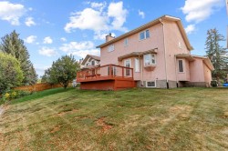 Located in the sought-after community of Santana Estates, this spacious six-bedroom home has been well maintained by its original owner. The property features a double attached garage, central air conditioning, and a recently replaced furnace for year-round comfort.The main floor includes a separate family room, a bedroom, and a full bathroom with a stand-up shower, suitable for guests or multi-generational living. A formal dining room with French doors can also function as a home office. The kitchen connects to a living room with a fireplace and a breakfast nook, with large windows providing natural light throughout the space.Upstairs includes the primary bedroom with a 5-piece ensuite bathroom, three additional bedrooms, and a 4-piece main bathroom. The fully finished basement offers a large recreation area, a sixth bedroom, and another full bathroom.Outside, the property features a large backyard deck surrounded by mature trees. The home is located near schools, off-leash dog parks, green spaces, and essential amenities, with convenient access to downtown, Country Hills Golf Club, Nose Hill Park, Beddington Trail, Deerfoot Trail, and Stoney Trail.