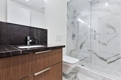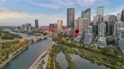 Welcome to Landmark at Waterfront, a boutique 5-storey executive condominium building perfectly positioned along the Bow River. This stunning 2 bed / 2.5 bath, plus den condominium combines luxury, sophistication, and functionality in one of Calgary’s most sought-after downtown addresses. Step inside to a spacious foyer featuring a conveniently located powder room and elegant finishes that set the tone for the home. Continue down the hall to the gourmet kitchen with marble and quartz countertops, complete with Wolf gas cooktop, Wolf built-in oven and microwave, Sub-Zero refrigerator, and Sub-Zero wine fridge. The kitchen is enhanced with owner-added built-in shelving, providing additional storage. The spacious living area features a stunning gas fireplace with a marble mantle, Herman Miller pendant lighting in the dining room, and large windows that flood the space with natural light. Adjacent to the living room is a spacious office/den that is perfect for working remotely. The primary bedroom is a serene retreat, offering a walk-in closet and a luxurious 5-piece ensuite with dual vanity, glass shower, and soaker tub. The secondary bedroom also includes its own 3-piece ensuite, providing comfort and privacy for guests or family members. One of the home’s most impressive features is the oversized outdoor patio — a rare offering in downtown living — perfect for entertaining, relaxing, or providing a great space for dogs. This exceptional residence includes two side-by-side underground parking stalls and a massive private storage room with custom shelving. Enjoy the best of urban living along the Bow River, with direct access to the pathway network, nearby restaurants, shops, and amenities — all within steps of your door. Landmark at Waterfront offers an unmatched lifestyle of comfort and convenience, including 24 hour security.