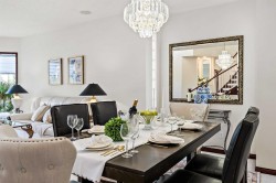 LOCATION, LUXURY, AND COMFORT — THIS DREAM HAS ALL!Located in the best part of The Hamptons, which is Calgary’s most sought-after golf course community, and just a short walk cross the street to Hamptons public school (K to 4), 3 mins drive to the junior high Tom Baines public school and 10 min drive to the famous Churchill high school. This house is also located near the Stoney ring road for an easy commute to the airport and the Rocky mountains. Backing onto a golf course and facing a large green space, this custom-built estate home offers a million-dollar view and unmatched privacy. This beautifully designed 4+1 bedroom plus office, 3.5-bathroom former show home offers over 4,000 sq ft of developed living space. The professionally designed, fully developed walk-out basement is ideal for entertainment, accommodating guests, or as a rental opportunity. Step inside to a grand 18-foot open-to-above foyer featuring a striking spiral staircase filling the home with natural light and a sense of grandeur. The main floor boasts an open-concept layout anchored by a gourmet chef’s kitchen, complete with a Bosch fridge, Bosch dishwasher, and a built-in oven and microwave which are replaced in the recent years. A spacious pantry adds generous storage.The living room features 18 feet soaring ceilings and floor-to-ceiling windows that capture the morning sun and provide tranquil views of the golf course. The space is centered around a stunning 3-sided fireplace. Step out onto the expansive balcony and enjoy views of the golf course and green space—perfect for morning coffee or evening relaxation. The balcony vinyl cover is brand new. Additional main-floor highlights include: A large office/guest room; An oversized laundry/mudroom; Elegant hardwood flooring; Expansive balcony with BBQ gas line.Upstairs, you’ll find 4 spacious bedrooms and 2 full bathrooms designed for family comfort. The master bedroom is a luxurious retreat, complete with a spa-like 5-piece ensuite. It includes dual vanities, a Jetted soaker tub, separate shower, brand-new quartz countertop, and a skylight. The bedroom also offers an unobstructed view of both the golf course and green space, plus a beautiful nature gas fireplace. The second full bathroom also features a new quartz countertop, skylight, and attractive vinyl flooring. The professionally finished walk-out basement provides endless versatility—ideal as a guest suite, mortgage helper, or entertainment space. It has 1 bedroom and 1 full bath, a large recreation area/living room, a wet bar with direct access to a covered patio and landscaped backyardThe east-facing yard is perfect for sunny mornings and shaded summer afternoons.Backyard highlights: Expansive green space for family fun like living in forest; Mature apple tree with good production every year; Wooden Canopy surrounded by lush greenery that creates a peaceful, natural retreat; Covered patio. Additional Features: Oversized, heated double garage; Two new high-efficiency furnaces
