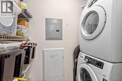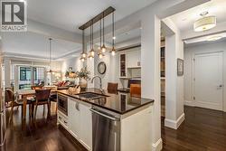 For the busy professional or the retired individual desiring the lock and go lifestyle, here is your solution. A ground floor, one bedroom, one bath, well-constructed 837 sq. ft. apartment in the notable and unique Quarry Park area. The private entry conveys you into the foyer where you will immediately note the efficient planning throughout. To the right is the in-suite laundry room along with ample closet space. The flooring is wide-plank warm hardwood and colors are neutral contributing to a feeling of space and calm. The kitchen features tasteful and plentiful white cabinetry, gleaming quartz countertops, tiled backsplash, a gas range with five-burner cooktop, stainless appliances, an island/breakfast bar with built-in microwave and deep double under counter mounted sink. Adjacent to the island is an ideal set up for your computer/office space. Moving into the open area dining room/living room notice the high tray ceilings and the amount of natural light flowing in from the south-facing patio doors. The bedroom is carpeted, has a substantial walk-in closet and a walk-through four-piece tiled bath. The substantial patio is your extra room to enjoy summer entertaining with a convenient gas hookup for BBQ. Additional conveniences include central air, a titled underground heated parking stall, a titled storage locker, car wash, bike room and visitor parking plus common area maintenance. Location is key being close to Deerfoot, Glenmore and Stoney Trails, Sue Higgins Park, the Bow River, Willow Park Golf & Country Club, shopping at nearby South Centre Mall, Calgary Farmers’ Market South, Ikea and Walmart Supercentre. (id:27)