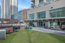 Bright 1 Bed + Den with 180° City & Mountain Views – Luxury Living in Luna Beltline!Bright and stylish 1 bed + den south-facing condo featuring an open layout, built-in desk, and modern kitchen with quartz countertops, gas cooktop, and full-height cabinets. Floor-to-ceiling south windows fill the home with light and showcase breathtaking 180° downtown and mountain views. Enjoy seamless indoor-outdoor living from your private balcony accessible from both the living room and bedroom. The primary suite offers a walkthrough closet and spa-inspired ensuite with soaker tub and rain shower. Includes in-suite laundry, A/C, titled heated parking, and storage locker. Luna residents enjoy top-tier amenities—fitness & yoga studios, steam room, lounge, guest suites, courtyard, and concierge. Steps to Co-op, 17th Ave, LRT, cafés, and parks—urban living at its best!
