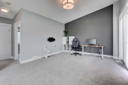 Discover the perfect blend of contemporary design and expert craftsmanship in this stunning three-storey executive home. Offering over 3,100 sqft of beautifully finished living space across four levels, this home is thoughtfully designed to meet the needs of modern family life while delivering timeless elegance. The main floor, with high ceilings and open-concept, is ideal for entertaining and family gatherings. A private front-facing office provides the perfect work-from-home space. The gourmet kitchen features stainless steel appliances, quartz countertops, and custom cabinetry that marries style with functionality. Upstairs, the second level hosts a luxurious primary retreat complete with a spa-inspired five-piece ensuite, including a soaker tub and walk-in shower. A second bedroom with its own ensuite and a convenient laundry room complete this floor.The third level boasts a spacious bonus room with vaulted ceilings and access to a private deck—perfect for entertaining or unwinding. A third bedroom and full bathroom make this level a fantastic option for guests or additional private living space.The fully finished basement includes a fourth bedroom, another full bathroom, and a generous living area—ideal for a media room, gym, or play space. Outside, enjoy the low-maintenance backyard with composite fencing —just step out and relax. The home also features an oversized single garage. Enjoy the convenience of being just a short walk from restaurants, fenced dog park, and scenic walking paths. Ideally located near downtown, Marda Loop, MRU and some of Calgary’s top-rated public and private schools, this home offers the perfect balance of elegance and urban energy.