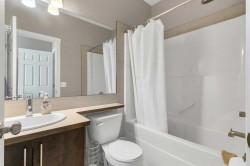 Welcome to this stylish and well-appointed 2-bedroom townhome in the vibrant community of Skyview Ranch. Thoughtfully designed for modern living, this multi-level home offers exceptional comfort, functionality, and convenience, complete with an attached single garage and two private balconies.The bright and open main living area features a spacious layout with large windows, allowing for an abundance of natural light. The contemporary kitchen is equipped with sleek cabinetry, stainless steel appliances, and ample counter space, making meal preparation a pleasure. The adjacent dining and living areas flow seamlessly, perfect for entertaining or everyday living. Step out onto the first of two balconies to enjoy fresh air and sunshine—ideal for morning coffee or evening relaxation.Upstairs, you'll find two generous bedrooms, including a primary suite with beautiful transom windows and 4-pc ensuite. A full bathroom, convenient upper-level laundry, and ample closet space complete the upper floor. The entry level offers room for a home office or flex room and direct access to your attached single garage, providing both security and ease in all seasons.Located in a well-maintained complex close to parks, playgrounds, schools, shopping, and transit, this townhome offers a perfect opportunity for first-time buyers, young professionals, or investors. Don’t miss your chance to own a beautiful home in the growing and family-friendly community of Skyview Ranch. Book your private viewing today!