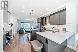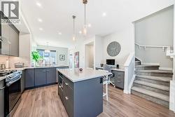 Click brochure link for more details. Welcome to Wolf Willow! This stunning townhouse sits on one of the most desirable streets in the community, with a pathway promenade that will connect with the river pathways leading into fish creek. This no condo fee townhouse features many builder upgrades, including upgraded railings and skylight. This home also features a soft water system. The main floor has plenty of space for family or entertaining. The Kitchen has an upgraded modern cabinetry with backsplash and beautiful quartz countertops with plenty of seating all around. You will love the upgraded appliances, including gas stove! The main floor has massive windows allowing for tons of sunlight , with high quality window coverings. There is also a nook set up as flex space for computer or coffee/wine bar. A two piece powder room also on the main floor. Upstairs you will find a large master bedroom with walk in closet and ensuite with shower and plenty of cabinet space. there is a second bedroom as well as a loft/flex space. There is another full bathroom with tub on the second floor. The basement is unfinished and ready for your input. Out back you will find a nice deck with bbq gas line and fully fenced yard space to enjoy your summer months. Also a detached insulated and heated garage to keep your car cozy in the winter months. You will be close to many amenities and shopping close by as well as dog parks. (id:27)