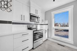 Stunning fully updated 3 bed / 1.5 bath end unit townhome. Perfectly located to the NW community of 'Thorncliffe' - featuring easy access to Deerfoot City, highways, downtown, nose hill park, walk to amenities and so much more. Step inside to your new home, with luxury upgrades and 1,129 sq ft of space to enjoy on the upper 2 levels. The main floor features: Living space, half bath, eating nook, and kitchen. Large windows leave the space feeling bright/inviting, along with new updates like freshly painted, wainscotting on wall, luxury vinyl plank flooring throughout, and best of all a new kitchen! The kitchen features: bright white cabinetry, quartz counters, two tone tile work, chic wallpaper, SS appliances with warranty, pantry, lots of cabinet space, crown moulding, & more. Head upstairs to find an updated cable railing, giving the home a high end feel. The upper level is complete with: 3 bedrooms, and fully updated full bathroom. The full bathroom has beautiful tile work, shower/tub combo, vanity, toilet. Primary room is a great size with ample room for additional furniture and large closet space for storage. Although the upper two levels offer a great amount of space, you also have an unfinished basement that is awaiting your creativity. The following are upgrades that have been done for your enjoyment: solid wood baseboards, solid wood casings, wainscotting, wallpaper, freshly painted, LVP floor, quartz counters, new kitchen, SS appliances w/ warranty, new toilets, new vanities, new doors, new hardware, new boutique light fixtures, and more. There is an included outdoor parking stall, along with street parking, & easy access to transit. With so much to offer in such a great location, this makes for a great place to call home. Book your viewing today, before it's gone! (id:27)