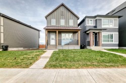 STARLING HAS BEEN QUIETLY BUILDING A REPUTATION—for calm streets, thoughtful design, and a nature-forward rhythm that buyers notice the moment they arrive. This home leans right into that energy. The WIDE FRONT PORCH sets a grounded first impression, and inside, natural light moves through the main floor with the kind of ease that makes the whole space feel instantly welcoming. Warm LVP, 9' CEILINGS, and a clean, modern palette work together to create that subtle “this feels right” moment you feel as soon as you walk in.And then there’s the FLEX ROOM.Framed with FRENCH DOORS and positioned with just enough separation from the main living spaces, it’s the RARE MAIN-FLOOR ROOM that feels truly intentional—not a leftover corner repurposed as an “office,” but a space with presence. It becomes whatever your life needs most: a polished workspace, a creative zone, a reading retreat, or simply a quiet room with a door when the rest of the house is in motion.The kitchen continues that thoughtful rhythm: QUARTZ COUNTERS, 42" UPPERS that keep the lines crisp, a CHIMNEY HOOD FAN that anchors the design, and storage placed exactly where real routines land. The SEPARATE SIDE ENTRY adds smart flexibility—practical now, and perfectly positioned for whatever plans come later.Upstairs, the layout stays calm and well-proportioned. Bedrooms sit where they should, offering both connection and privacy, and the upper laundry room keeps daily life where it actually happens. The primary ensuite is the unexpected luxury in this footprint: A SOAKER TUB, A TILE-AND-GLASS SHOWER, AND A DUAL-SINK VANITY—a trio rarely found together in homes this size, and one that quietly transforms both mornings and evenings.Outside, the REVERSE-PIE LOT is a meaningful advantage. It gives you a LARGER FRONT YARD AND A GENEROUS SIDE YARD, creating more breathing room, more natural light, and a sense of separation that’s uncommon in new communities. The off-street parking pad off the paved lane provides easy parking right at home—no street shuffle required. Add the REAR DECK with its BBQ gas line, front sod already in place, and 200-amp electrical service, and the long-term livability becomes clear.Set within steps of Starling’s PATHWAY NETWORK and nature-first streetscape, this is a home that blends light, flow, and flexibility with quiet confidence.BOOK A SHOWING and come see how naturally it fits the way you live. • PLEASE NOTE: Kitchen appliances are included, and will be installed prior to possession.