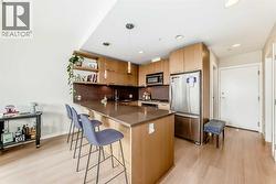 This well-maintained 1-bedroom apartment offers a bright, open, and functional layout designed for modern living. The gourmet kitchen features stainless steel appliances including a built-in oven and gas cooktop, quartz countertops, under-cabinet lighting, a sleek backsplash, and ample cabinetry with a large pantry. The living area boasts 9’ ceilings and floor-to-ceiling windows that fill the space with natural light and capture city views. The spacious queen-size bedroom includes a walk-through closet leading to the ensuite. Enjoy your private east-facing balcony with a BBQ gas hookup overlooking a quiet street. Building amenities include two fitness centers, a bike storage room, car wash bay, dog wash station, visitor parking, and a beautifully landscaped courtyard with seating areas. This unit comes complete with a titled underground parking stall, an assigned storage locker, in-suite laundry, and extra storage space. Located within walking distance to restaurants, cafés, shops, the downtown core, public transit, and river pathways—this home is perfect for professionals seeking a convenient urban lifestyle! (id:27)