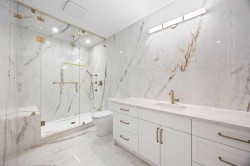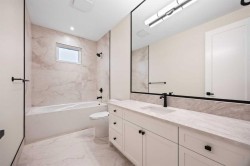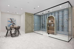 LUXURY LIVING IN VARSITY ESTATES!! With over 6,300 sq.ft. of exquisitely designed living space, this custom estate home blends timeless craftsmanship with refined modern details in one of Calgary’s most prestigious communities. The grand entrance welcomes you with soaring vaulted ceilings, a striking leathered granite fireplace, and stunning designer chandeliers. A front office provides the perfect space to work from home, while elegant arches and custom millwork set a tone of sophistication throughout. The gourmet kitchen is a showpiece, featuring Taj Mahal quartz countertops, JennAir appliances, a wall oven, and a large island ideal for entertaining. The dining room is enhanced with picture frame molding and fluted detailing, while a second main floor living room with a stone fireplace offers a warm retreat. Completing the main level is a stylish powder room, a well-appointed mudroom with built-ins, and garage access with space for an optional third bay, gym, or golf simulator. Upstairs, you’ll find three bedrooms, each with its own ensuite, including one with a hidden paneled door that adds a touch of intrigue. A spacious bonus room and a designer wet bar provide additional comfort, and the bonus room can easily be converted into a fourth bedroom to suit your needs. Convenient upstairs laundry adds ease to family living. The fully developed basement is an entertainer’s dream, boasting two additional bedrooms, a large recreation space, a stunning glass-enclosed wine cellar with arched shelving, a hidden movie theater with hand-painted ceiling detail, and a wet bar with striking copper accents. Step outside to your private backyard oasis, complete with a covered deck featuring a built-in gas fireplace and motorized screens, plus an aggregate patio with pergola—perfect for summer evenings. This home is also thoughtfully equipped with heated bathroom floors, an EV charger, and 200 amp service, ensuring both modern convenience and efficiency. Additional features include central air conditioning for year-round comfort. This rare Varsity Estates offering delivers both elegance and function, designed for those who appreciate the finest in luxury living.