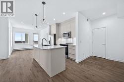 Welcome to Arthur by Truman – a brand-new residence in Calgary’s vibrant Cityscape community!This bright corner unit offers 3 bedrooms, 2 bathrooms, and an oversized balcony, designed for modern living with style, comfort, and functionality. The open-concept layout maximizes natural light, creating an inviting space for daily living and entertaining.The contemporary kitchen flows seamlessly into the living area, while the primary bedroom features a 3-piece ensuite. Two additional bedrooms share a 4-piece main bathroom, and in-suite laundry adds convenience. The oversized corner balcony provides extra space for relaxing or entertaining.Located in the thoughtfully planned Cityscape community, Arthur offers easy access to parks, pathways, shopping, dining, and schools, with Stoney Trail and Metis Trail close by for quick city connections.Perfect for first-time buyers, professionals, or investors, Arthur by Truman combines low-maintenance, modern living with the excitement of a brand-new building in a connected, growing community. (id:27)