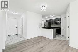 Modern, move-in ready living in the heart of Legacy. This fully updated 2-bedroom, 2-bathroom condo sits on the third floor with a west-facing exposure that brings in beautiful afternoon light. The open-concept design blends the living and dining areas seamlessly, offering a functional layout that works just as well for everyday living as it does for entertaining. A breakfast bar defines the kitchen space, while large windows throughout enhance the bright, airy atmosphere. Thoughtful upgrades include granite countertops, updated kitchen cabinetry, stainless steel appliances, fresh paint, and luxury vinyl plank flooring, delivering a clean, modern finish throughout. The primary bedroom features a walk-through closet and private 4-piece ensuite, while the second bedroom and full bathroom provide flexibility for guests, a home office, or shared living. In-suite laundry with full-size machines and extra storage add to the home’s practicality. Step outside to the spacious covered balcony, ideal for unwinding or hosting friends. This unit also includes a titled underground parking stall in a heated parkade, along with secure bicycle storage. Conveniently located near shopping, dining, parks, pathways, and the South Health Campus, with easy access to Macleod Trail, Stoney Trail, and Deerfoot Trail. Public transit is just steps away, making this a fantastic option for first-time buyers, downsizers, or investors looking for a stylish, low-maintenance home in a well-connected community. (id:27)