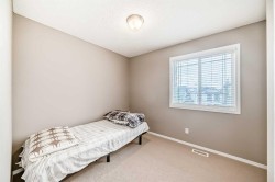 Tucked away on a quiet, family-friendly street, this beautifully maintained two-storey home offers exceptional comfort, thoughtful upgrades, and an ideal layout for growing families or first-time buyers alike. With 3 spacious bedrooms, 2.5 bath with over 1,400 square feet of well-designed living space, this home delivers both functionality and charm in one inviting package.Step into the welcoming living room, where large windows flood the space with natural light and a cozy fireplace—framed by a rich cherry maple mantle and convenient TV niche—sets the perfect ambiance for relaxing evenings. At the heart of the home, a centrally located maple staircase creates a stylish transition into the kitchen and dining area.The kitchen is a chef’s delight, featuring sleek black appliances, ample cherry maple cabinetry, a contemporary tile backsplash, and a functional center island ideal for meal prep and casual dining. Whether you're hosting guests or enjoying everyday meals, this space is designed for connection and convenience.Upstairs, the bright and spacious primary bedroom features extra windows, a large walk-in closet, and a private 3-piece ensuite—offering the perfect retreat after a long day. Two additional well-sized bedrooms and a full 4-piece bathroom complete the upper level.Located near schools, parks, shopping, and major commuter routes, this home offers easy access to everything your family needs. With great curb appeal and a welcoming interior, 135 Copperstone Grove SE is a home you’ll be proud to call your own.