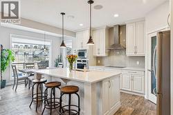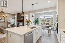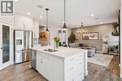 Welcome to a truly one-of-a-kind family home backing onto a peaceful creek and green space in the sought-after community of Sage Meadows. Designed for real life, this home offers the perfect balance of family fun, entertaining, and everyday comfort — all set against beautiful natural views. The main floor is ideal for everyday living or hosting family and friends, featuring an open living and dining area anchored by a striking double-sided fireplace, a chef-inspired kitchen with ceiling-height cabinetry and an induction cooktop and convection oven, a dedicated home office, plus laundry and a powder room. Upstairs, you’ll find the primary retreat you have been searching for, with plenty of room for the king bedroom set. You’ll love the views, large walk-in closet, and beautiful ensuite. Down the hall, you’ll find two additional generously sized bedrooms and a bonus room, which is every child’s dream — a custom two-storey castle playroom complete with slide, ball pit, and reading nooks, creating an unforgettable indoor adventure space that’s perfect for long Canadian winters. The walkout basement offers an adult retreat and hangout space with a heated floor, pool table area, handcrafted wood wet bar, wine nook, and a spa-style bathroom featuring a steam shower, valance lighting, and petrified wood sinks, along with an additional bedroom and plenty of storage. Outdoor living is a highlight with both an upper and lower deck facing the creek and green space. Each level includes hanging patio lights, outdoor speakers, gas hookups, and hose connections for easy entertaining and garden care. The lower walkout deck provides direct access to walking and cycle paths that lead to a playground just two minutes away. With major recent updates including new windows, roof, garage door, and eavestroughs, and thoughtful features like central air, hot water on demand, whole-home audio, and central vacuum, this home blends comfort, function, and lifestyle beautifully. Perfect for famil ies who want more than just a house — this is a home built for memories. Also coming soon to the community are schools! 5 minute drive distance to both an elementary and a secondary school. Call your favorite realtor to book a private viewing today. It's a move you'll be glad you made. (id:27)
